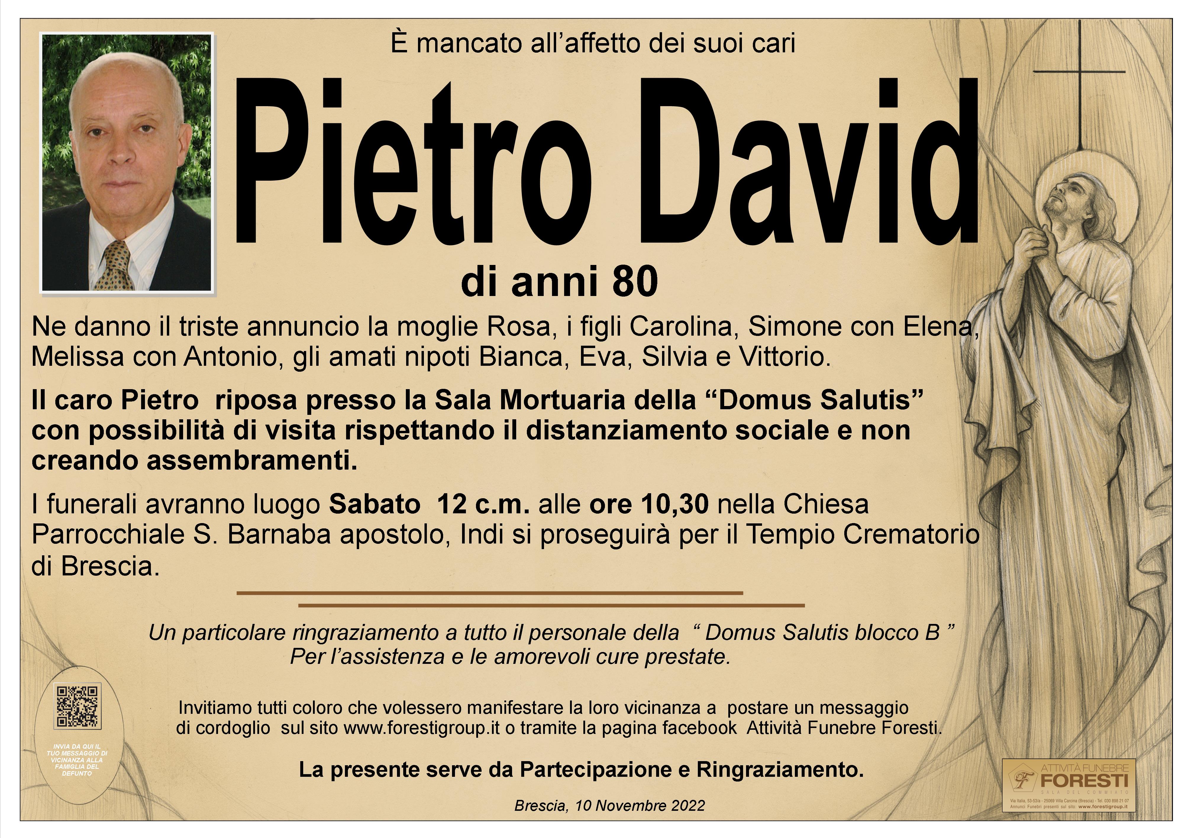 IL CARO PIETRO RIPOSA PRESSO LA SALA MORTUARIA DELLA "DOMUS SALUTIS"