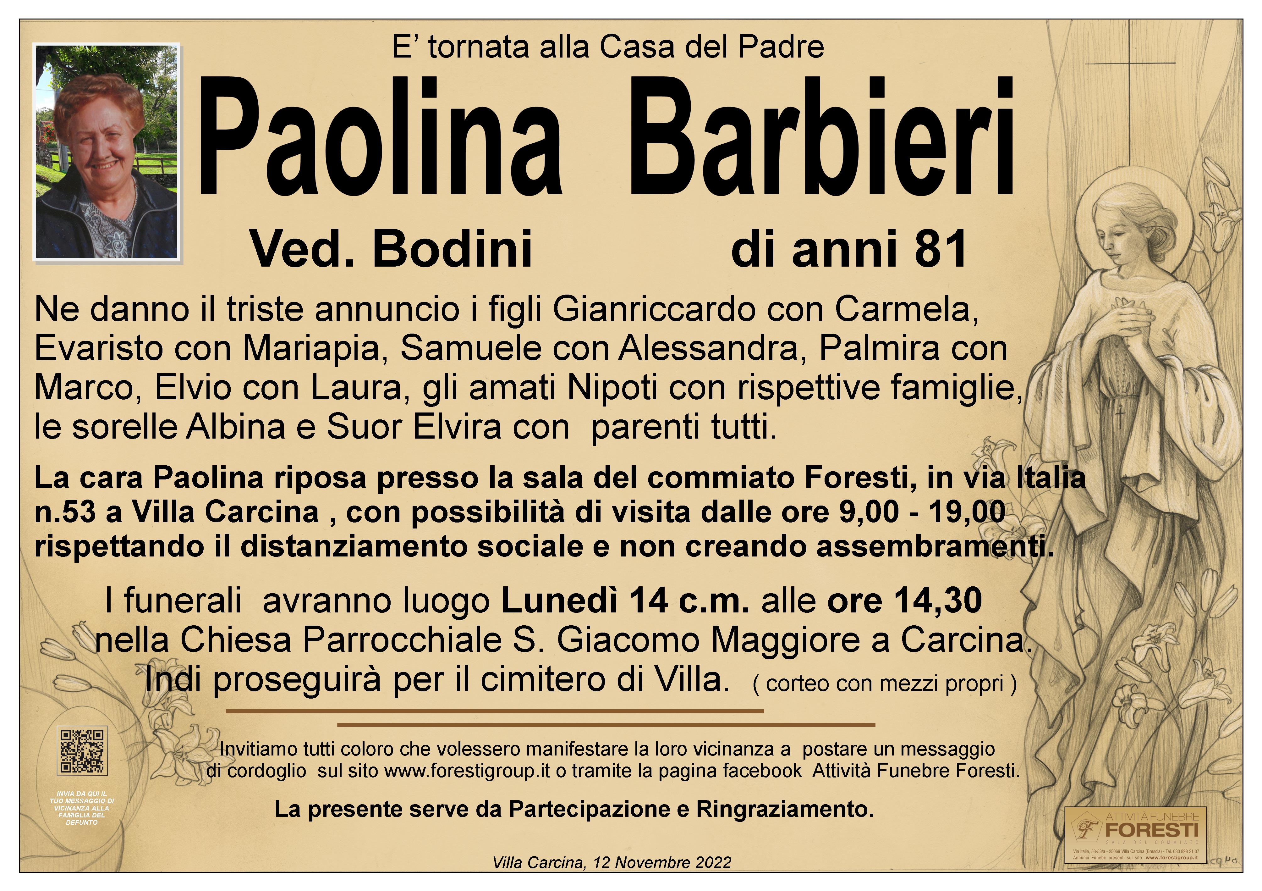 AURELIO MARINA E LUCA PORGONO SENTITE CONDOGLIANZE AI FAMIGLIARI PER LA PERDITA DELLA MAMMAPAOLINA BARBIERI