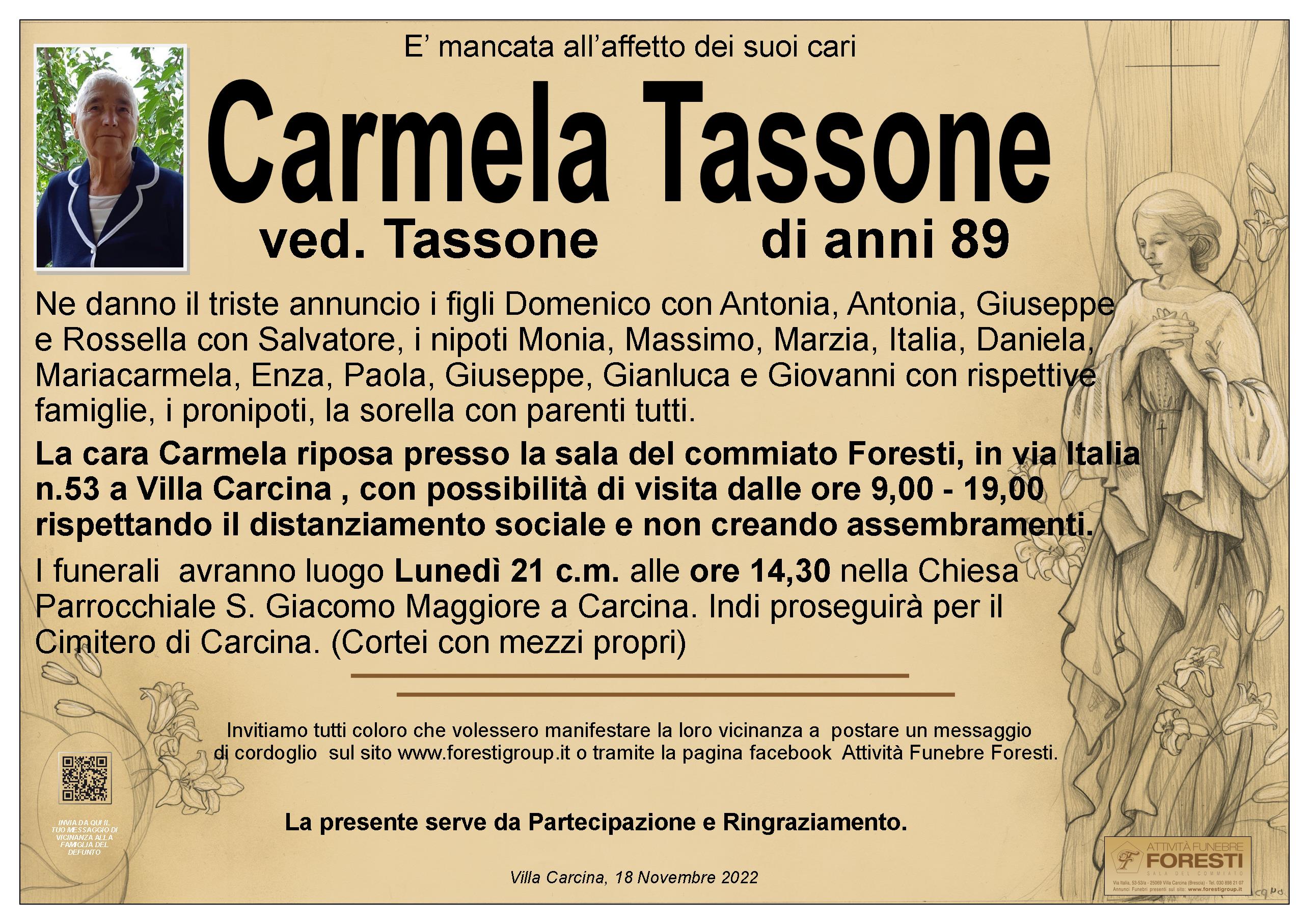La cara Carmela riposa presso la sala del commiato Foresti, in via Italia n.53 a Villa Carcina , con possibilità di visita dalle ore 9,00 - 19,00 rispettando il distanziamento sociale e non creando assembramenti.