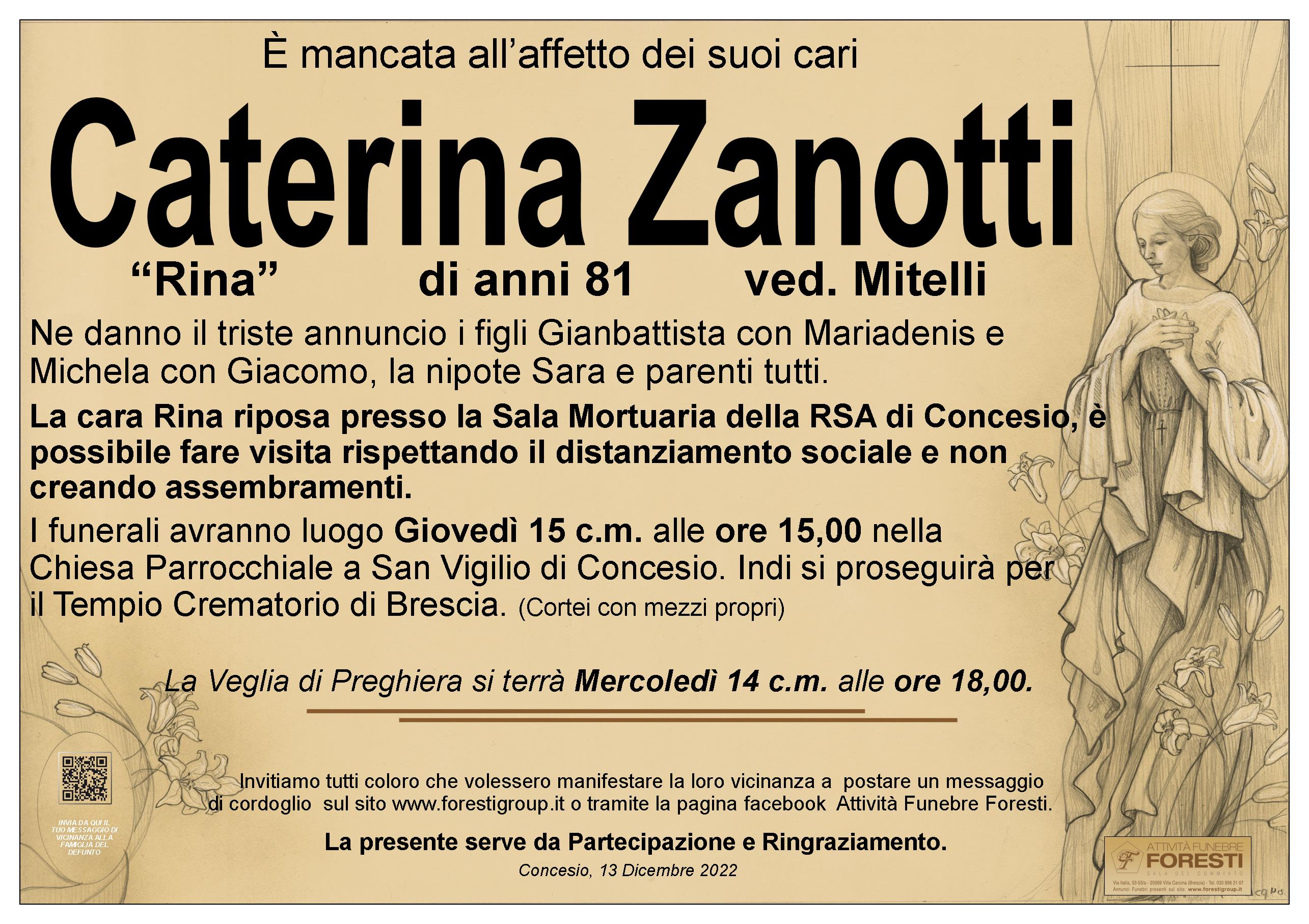 I funerali avranno luogo Giovedì 15 c.m. alle ore 15,00 nella Chiesa Parrocchiale a San Vigilio di Concesio. Indi si proseguirà per il Tempio Crematorio di Brescia.