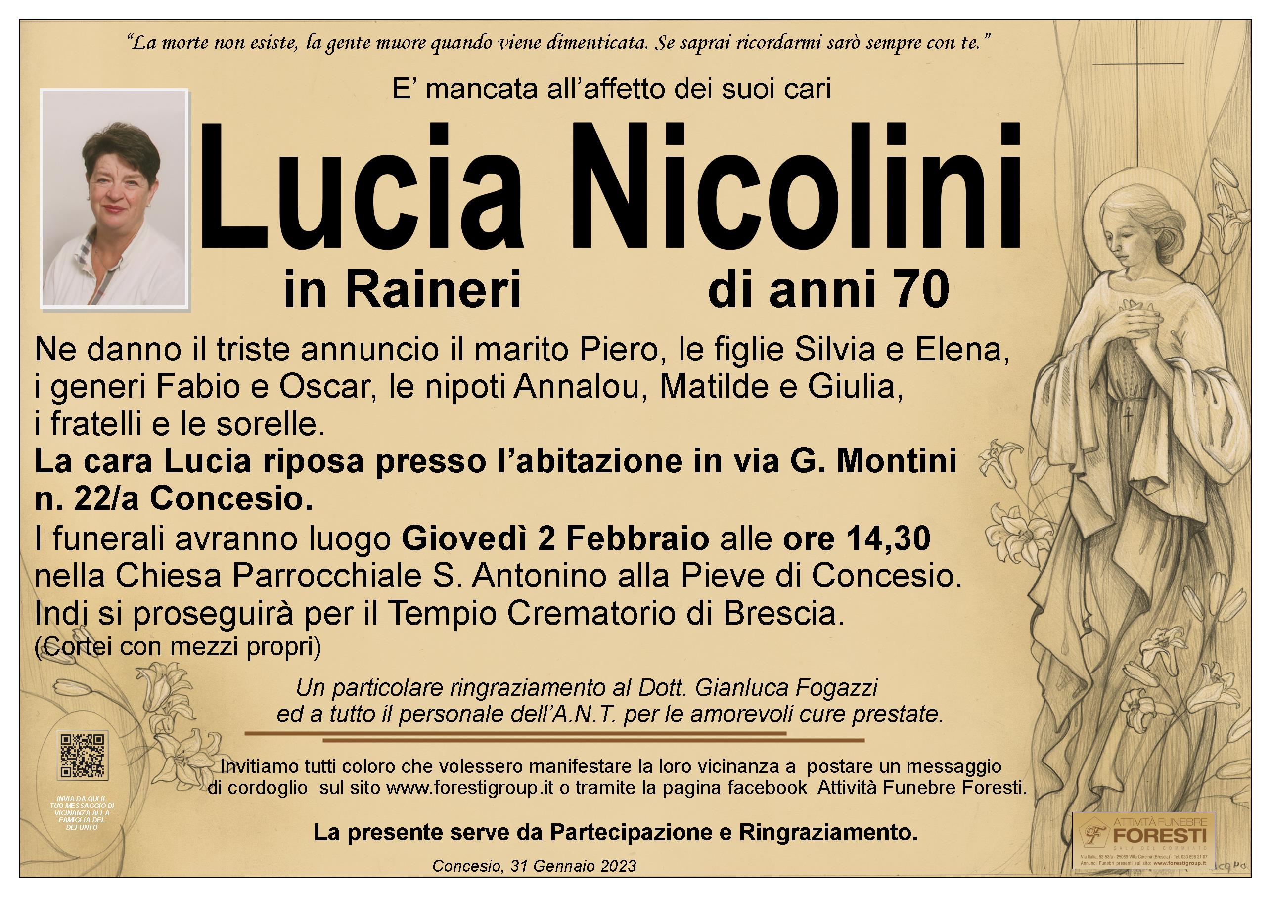 La cara Lucia riposa presso l’abitazione in via G. Montini n. 22/a Concesio.