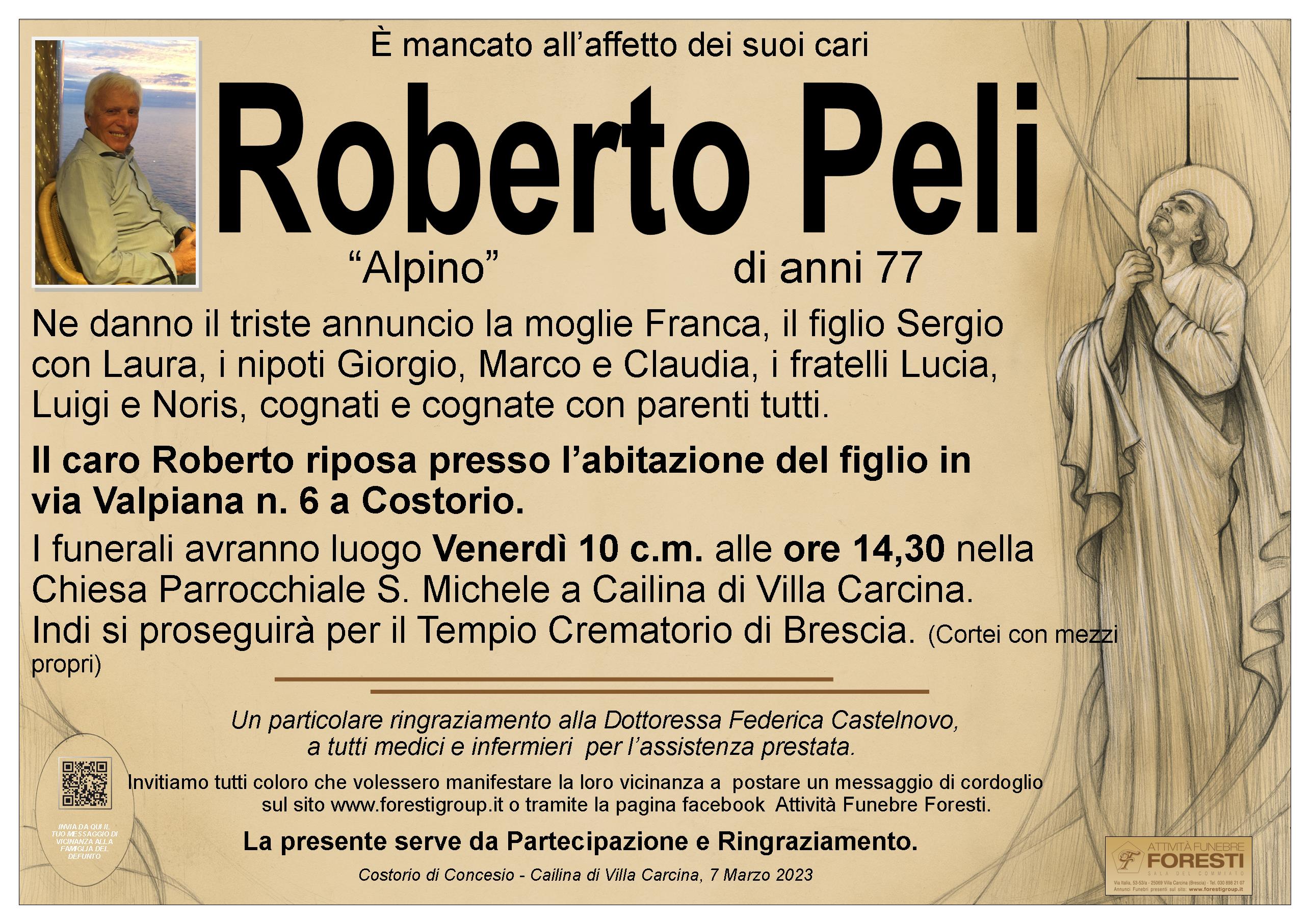A nome mio e dell'ANPI di Villa Carcina, che rappresento, porgo sentite condoglianze ai familiari di Roberto. Ricordiamo il suo impegno nell'A.N.A. per fare memoria della storia degli Alpini e per ribadire l'impegno a difendere i valori della libertà, della democrazia e della pace.