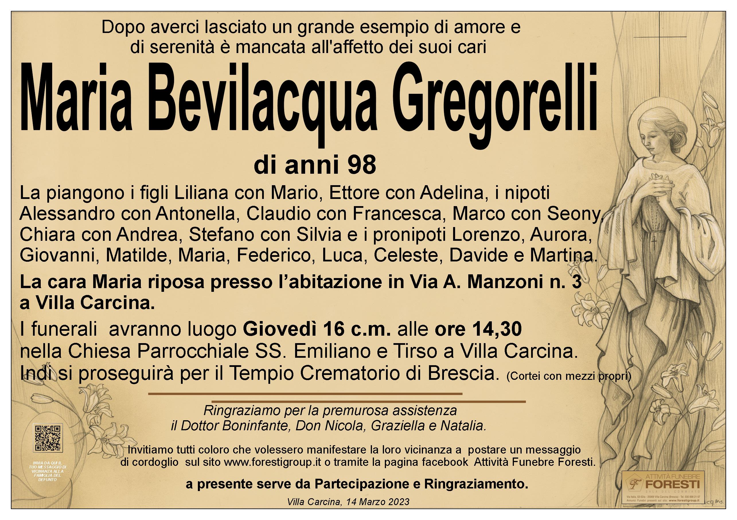 Graziella e Alfonso, con Marco e Lucia, Fabio con Evelina e Gabriele si uniscono al cordoglio della famiglia Gregorelli, per la perdita della cara nonna Maria.