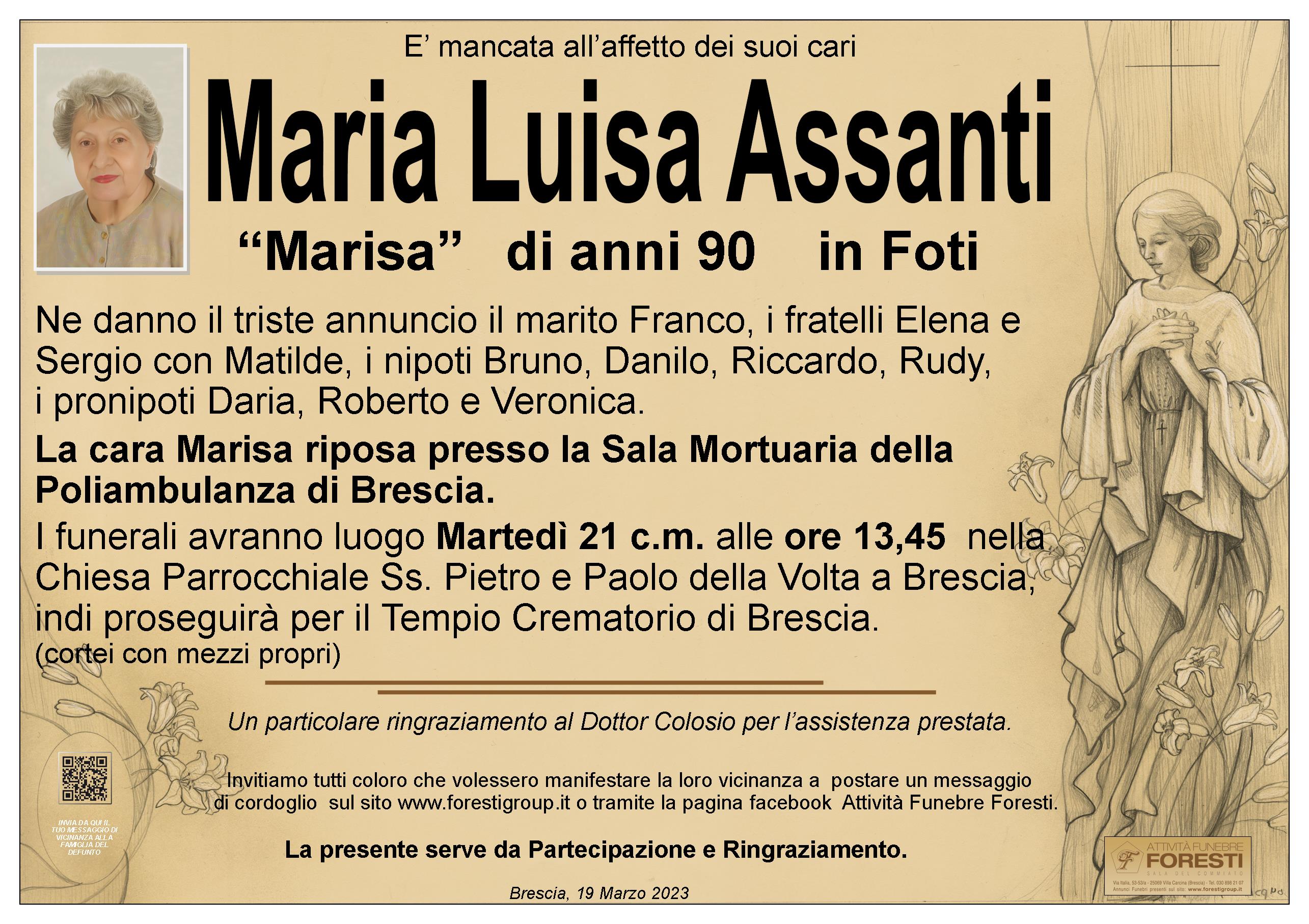 La cara Marisa riposa presso la Sala Mortuaria della Poliambulanza di Brescia.