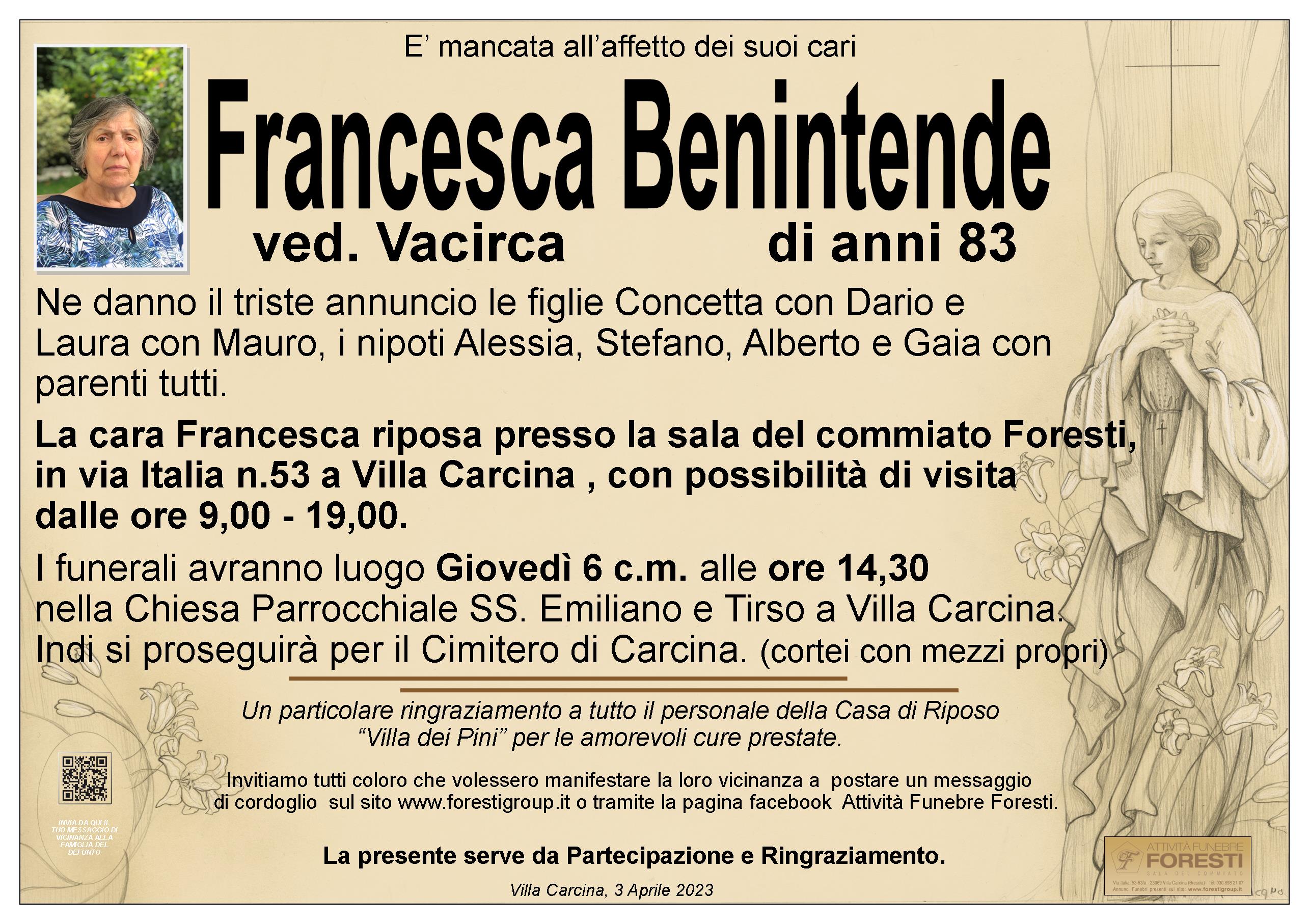 La cara Francesca riposa presso la sala del commiato Foresti, in via Italia n.53 a Villa Carcina , con possibilità di visita dalle ore 9,00 - 19,00.