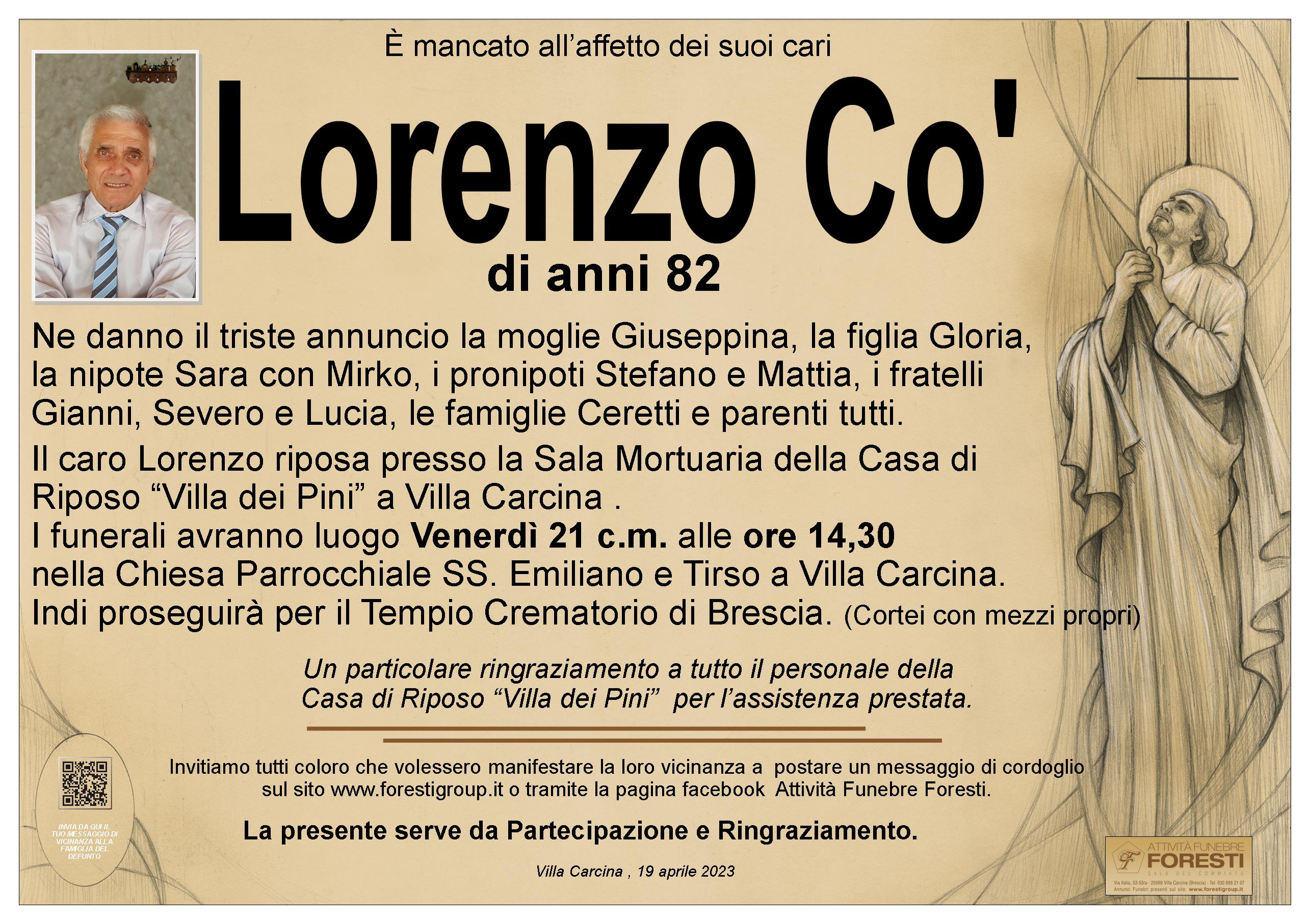 Il caro Lorenzo riposa presso la Sala Mortuaria della Casa di Riposo “Villa dei Pini” a Villa Carcina .
