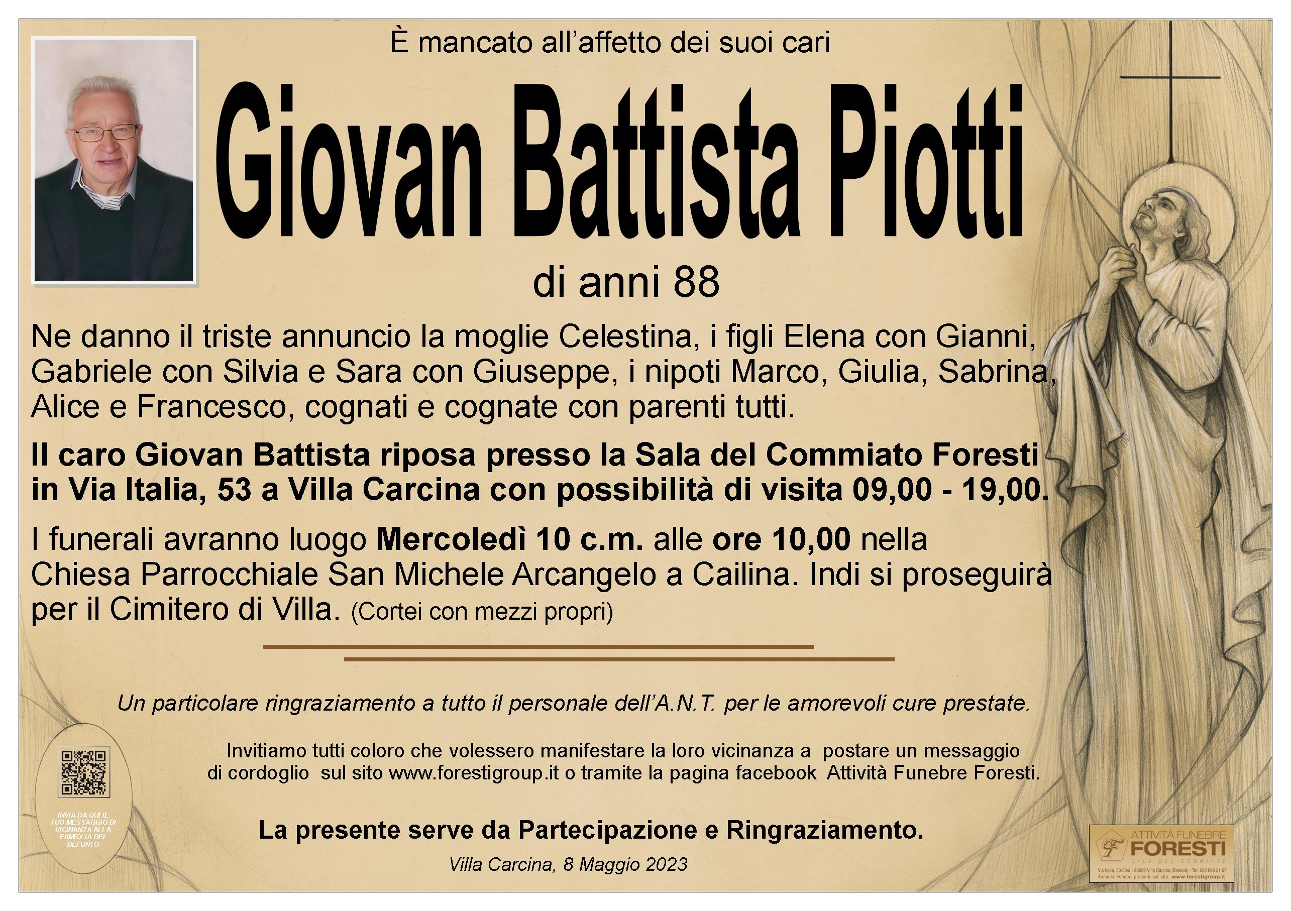 Il caro Giovan Battista riposa presso la Sala del Commiato Foresti in Via Italia, 53 a Villa Carcina con possibilità di visita 09,00 - 19,00.