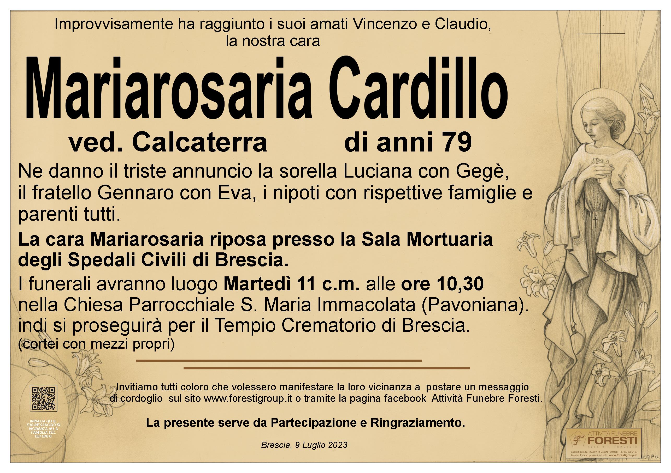 La cara Mariarosaria riposa presso la Sala Mortuaria degli Spedali Civili di Brescia.