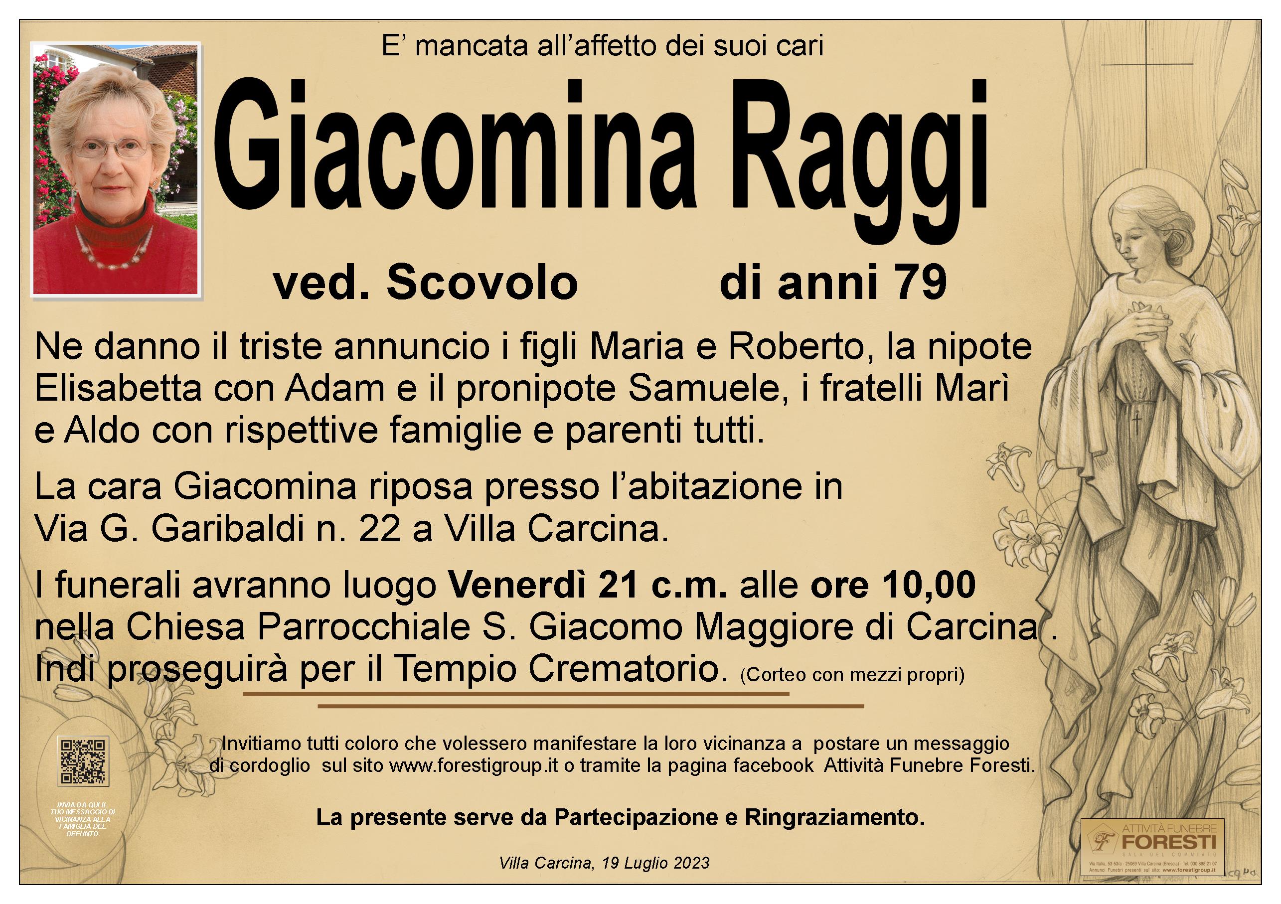 I funerali avranno luogo Venerdì 21 c.m. alle ore 10,00 nella Chiesa Parrocchiale S. Giacomo Maggiore di Carcina. Indi proseguirà per il Tempio Crematorio.