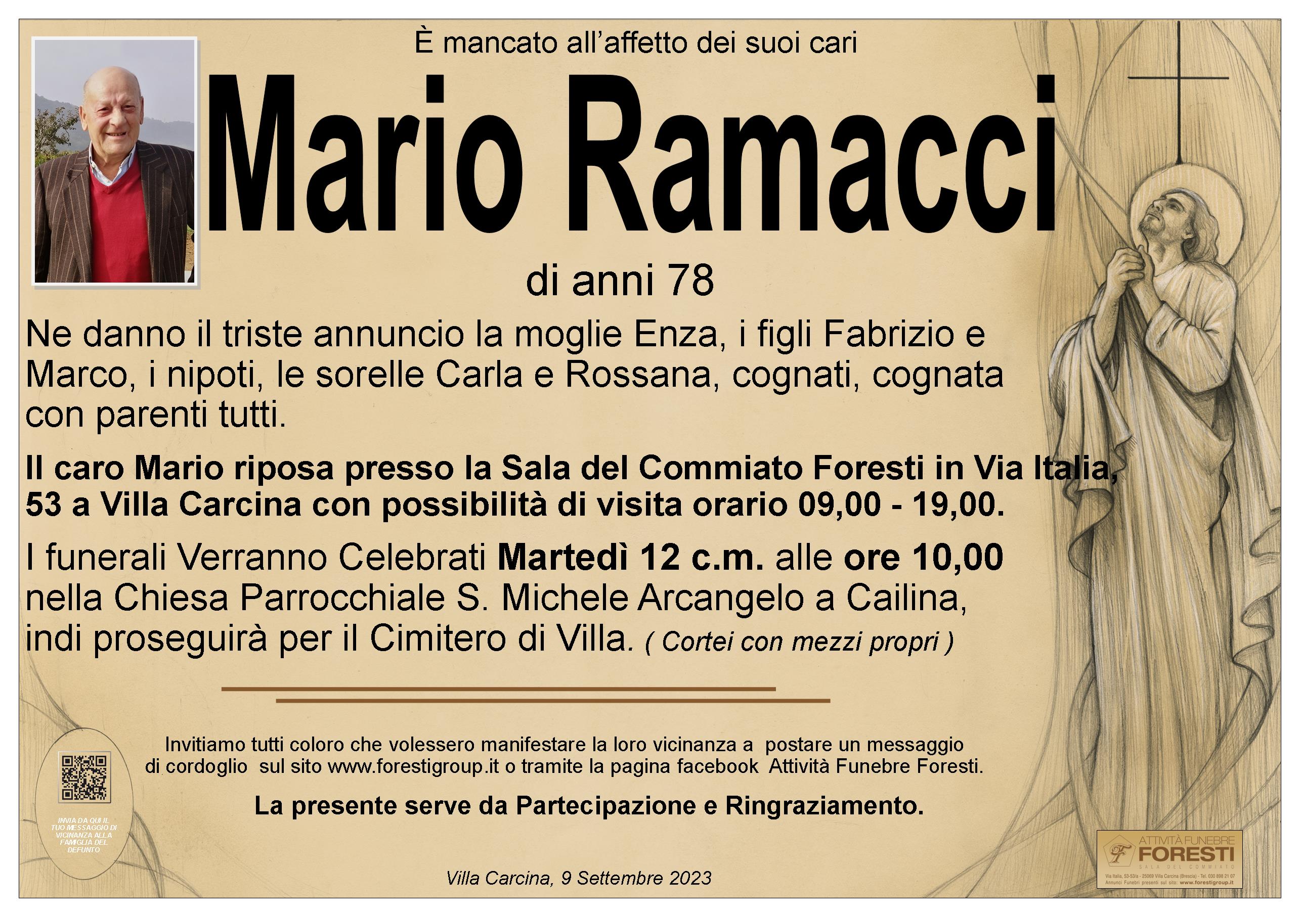 Il caro Mario riposa presso la Sala del Commiato Foresti in Via Italia, 53 a Villa Carcina con possibilità di visita orario 09,00 - 19,00.