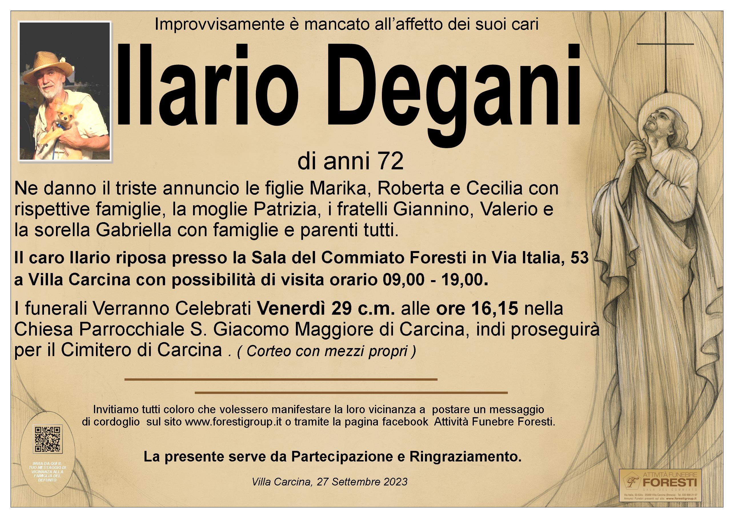 Il caro Ilario riposa presso la Sala del Commiato Foresti in Via Italia, 53 a Villa Carcina con possibilità di visita orario 09,00 - 19,00.