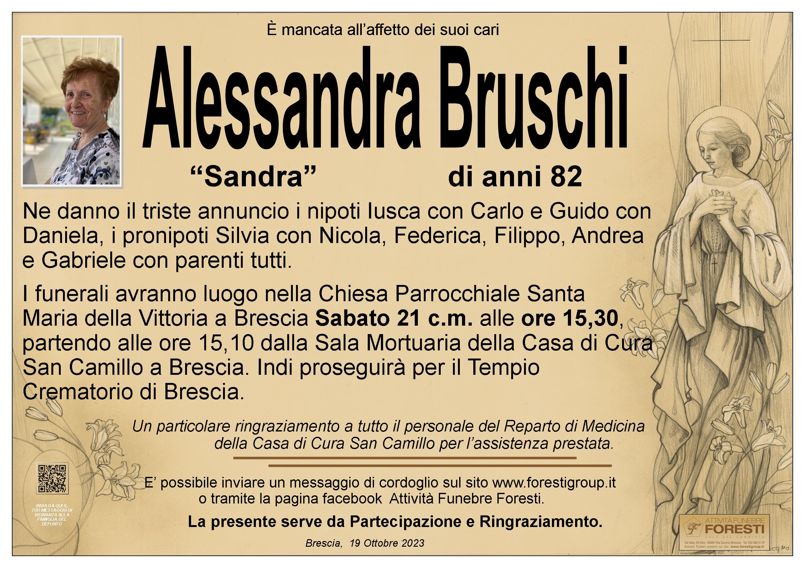 I funerali avranno luogo nella Chiesa Parrocchiale Santa Maria della Vittoria a Brescia Sabato 21 c.m. alle ore 15,30, partendo alle ore 15,10 dalla Sala Mortuaria della Casa di Cura San Camillo a Brescia. Indi proseguirà per il Tempio Crematorio di Brescia.