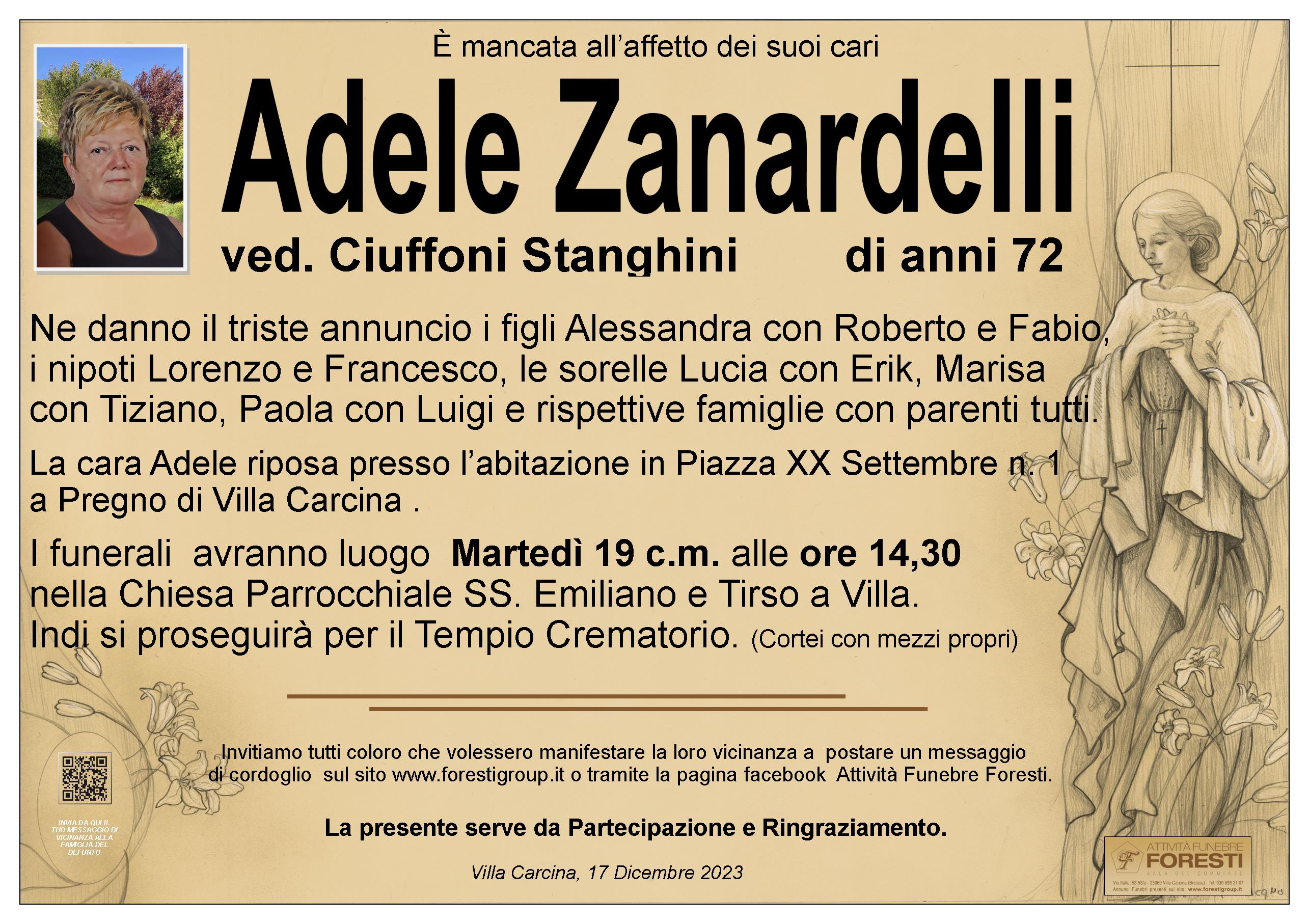 Carissima Adele,ricorderò sempre il tuo sorriso, la tua allegria,e i tuoi ottimi pranzetti cucinati con tanto amore quando venivi alla nostra scuola dell'infanzia...riposa in pace Sentite condoglianze alla famiglia, ai figli e alle sorelle Marisa Paola e Lucia
