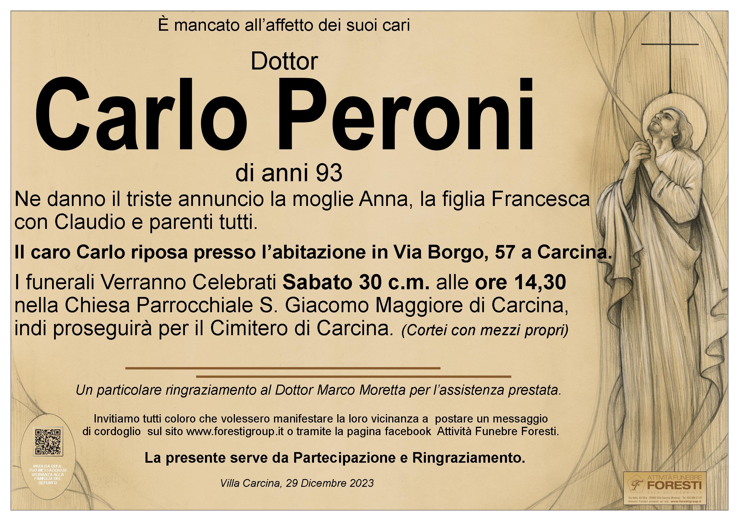 Orizio Claudio e Patrizia porgono sentite condoglianze ai familiari per la perdita del Dottor Carlo Peroni