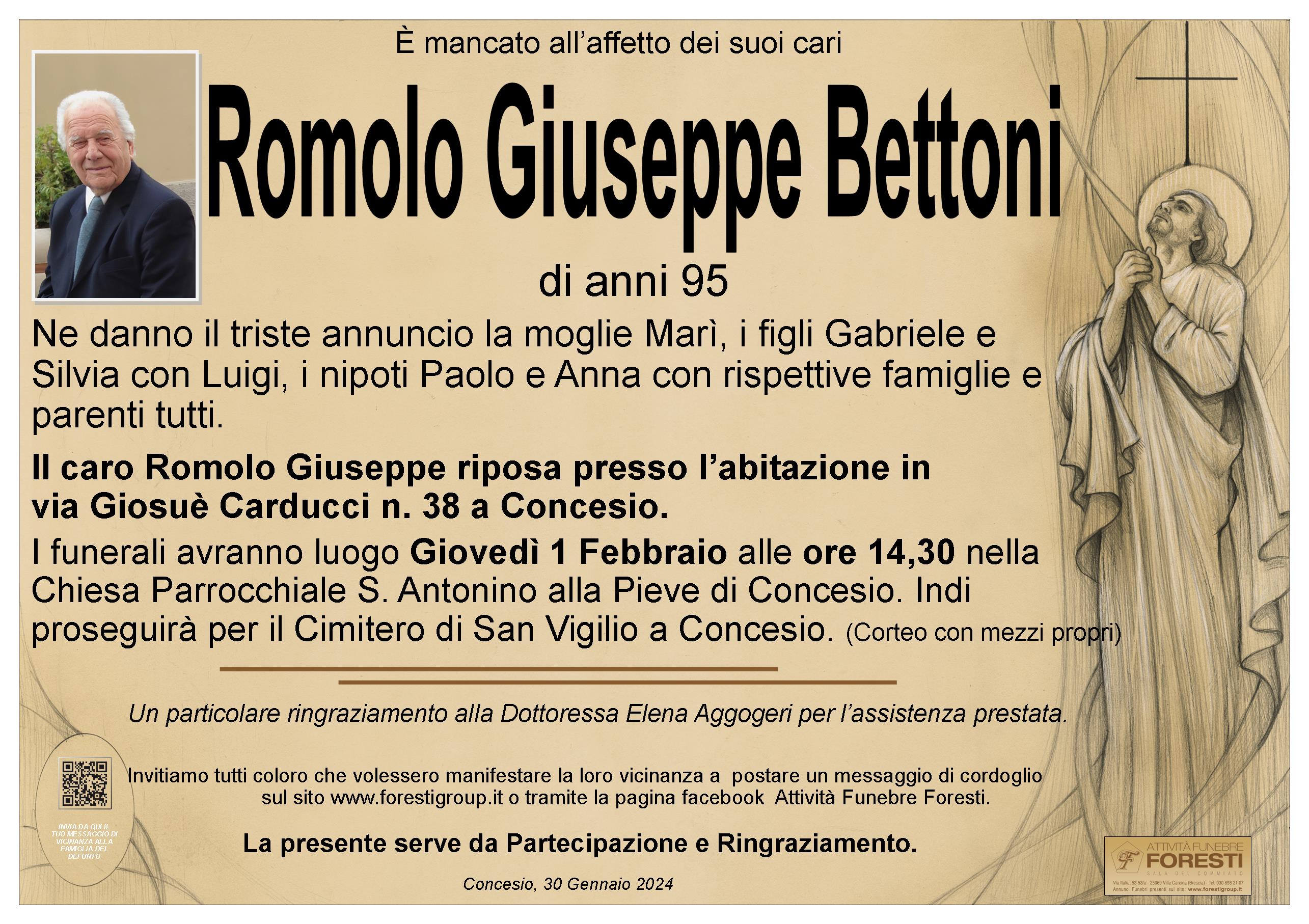 Il caro Romolo Giuseppe riposa presso l’abitazione in via Giosuè Carducci n. 38 a Concesio.
