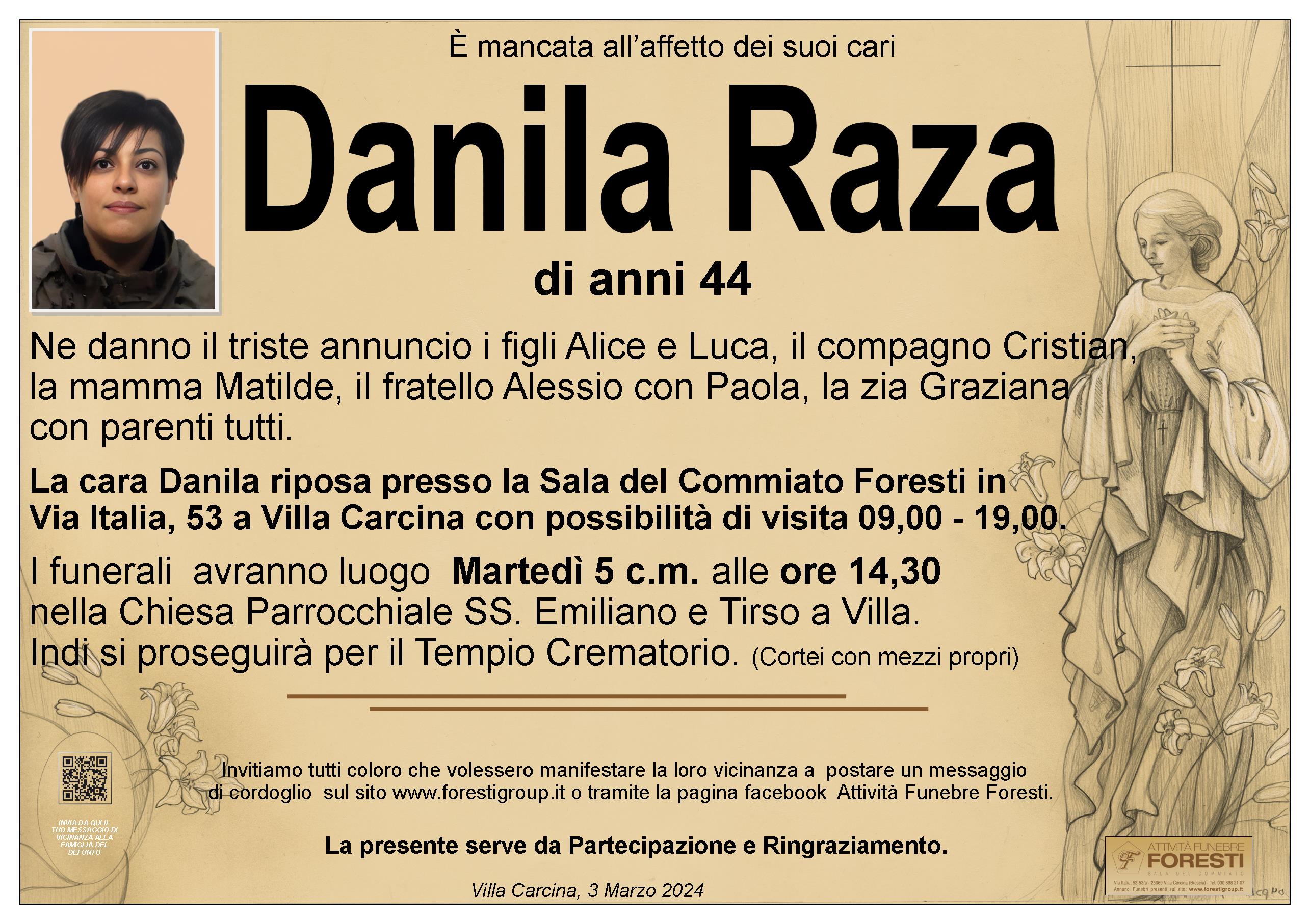 La cara Danila riposa presso la Sala del Commiato Foresti in Via Italia, 53 a Villa Carcina con possibilità di visita 09,00 - 19,00.